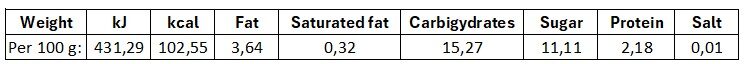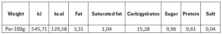 Nutritional value of the product