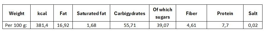 Energy snack with a protein touch and rich nutty flavor.
