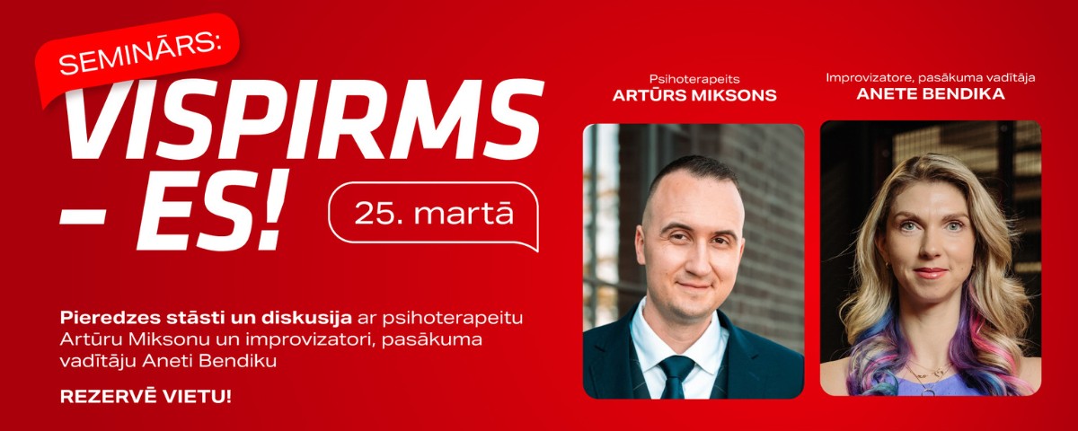 Sieviete šodien dzīvo daudzās lomās: profesionāle, sieva, draudzene, meita, mamma, atbalsts citiem. Un bieži – pēdējā savā prioritāšu sarakstā. Seminārs “VISPIRMS ES!” ir par drosmi nostāties savas dzīves centrā bez vainas sajūtas. Par apzināšanos, ka rūpes par sevi nav egoisms, bet priekšnoteikums emocionālai stabilitātei, veselīgām attiecībām un iekšējam spēkam.